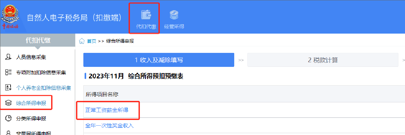 代扣代缴-综合所得申报-正常工资薪金所得;