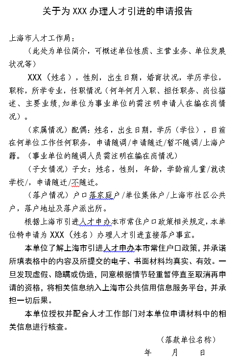 通知|人才引进落户申请报告填写指南
