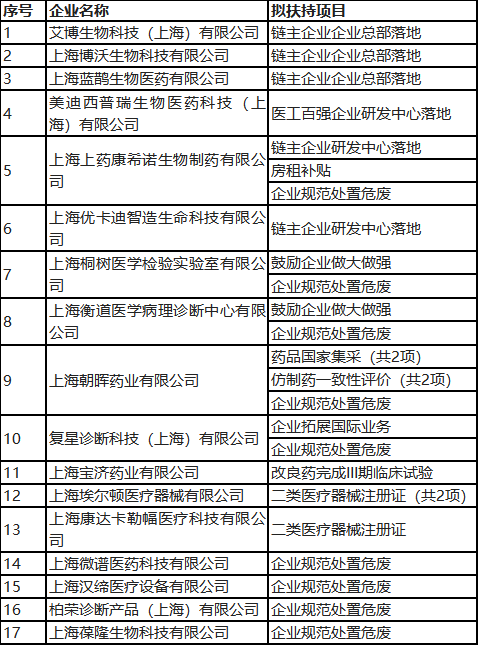 2022年度宝山区生物医药专项第一批扶持项目公示名单
